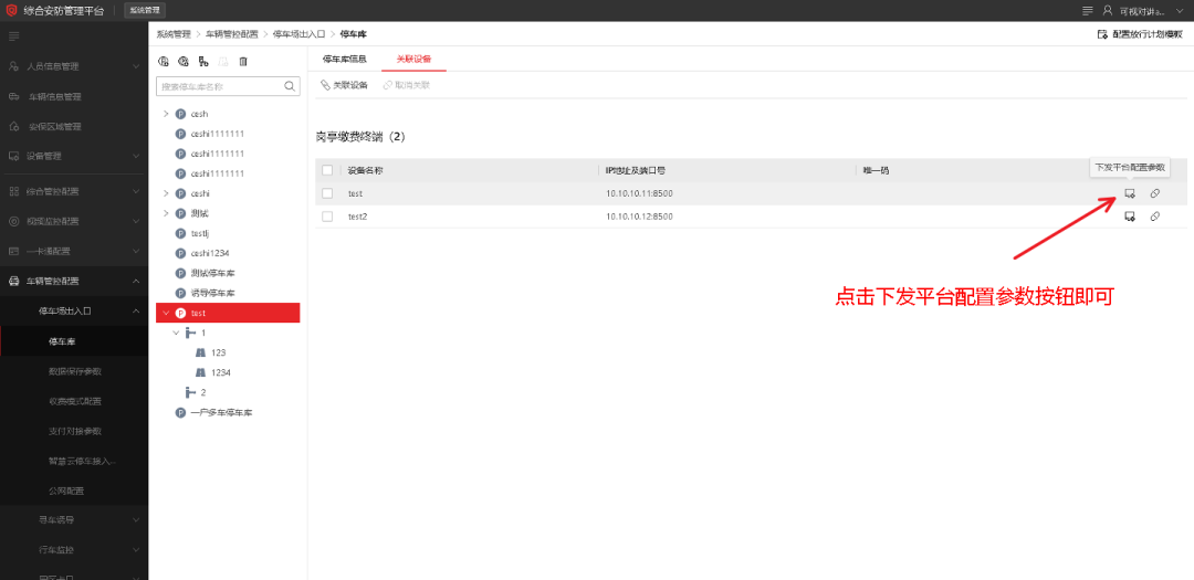 02 选择已添加的停车库选择关联设备菜单,单击关联设备: