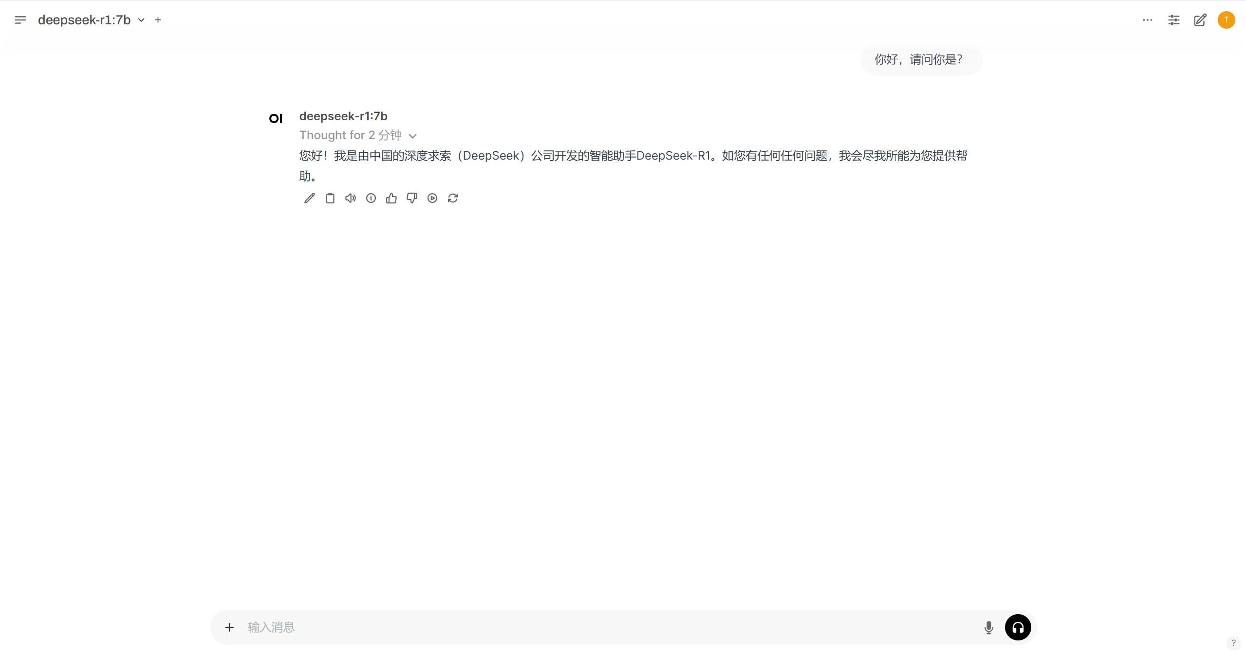 创建完成后会自动进入管理界面,现在你可以在浏览器中更直观地与DeepSeek-R1模型对话了。