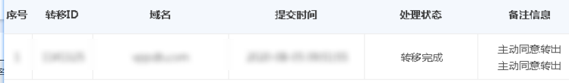 付费成功后,看到域名转入进度的信息是这样的。