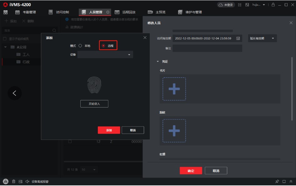 方法1、选择本地,选择对应的指纹录入仪,点击开始录入,录入完成后,点击添加