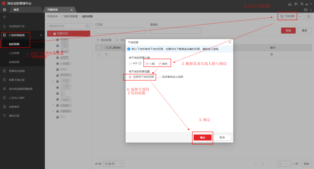 Hikvision iSecure Center综合安防管理 平台可视对讲设备添加及权限下发配置: