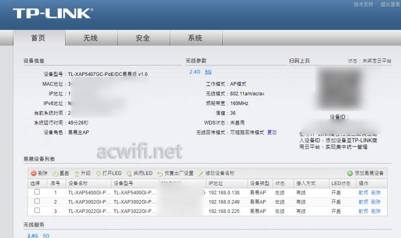 这个方法操作简单,跟用无线路由器组mesh差不多。缺点跟无线路由器组mesh(易展)一样:不能对单个AP进行单独的设置。