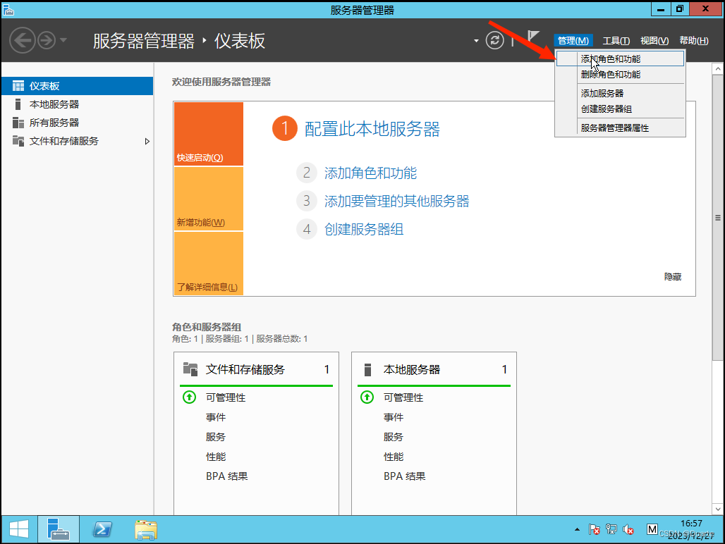 点击 开始 -> 服务器管理器。 左侧菜单:配置 -> 本地用户和组 -> 组 在组上右键 -> 新建组 填入组名,点击创建