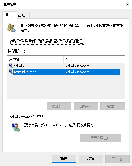 先选中要设置的账户,再取消选中“要使用本计算机,用户必须输入用户名和密码”选项。