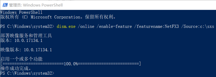 举例:将.cab后缀文件拖到C:\sxs目录下,然后以管理员方式打开PowerShell或Cmd,直接粘贴语句dism.exe /online /enable-feature /featurename:NetFX3 /Source:c:\sxs回车等待就好了。