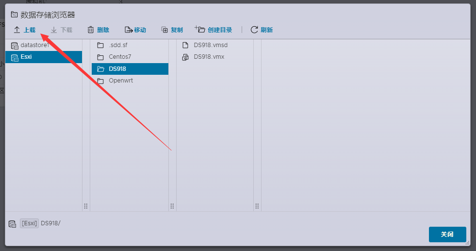 注意:这里要说明一下,ESXi的引导文件一共有两个,只上传一个是不会显示的,两个文件上传完毕后会合成一个VMDK文件,如果上传完两个文件后,发现只有一个文件说明是正常的。