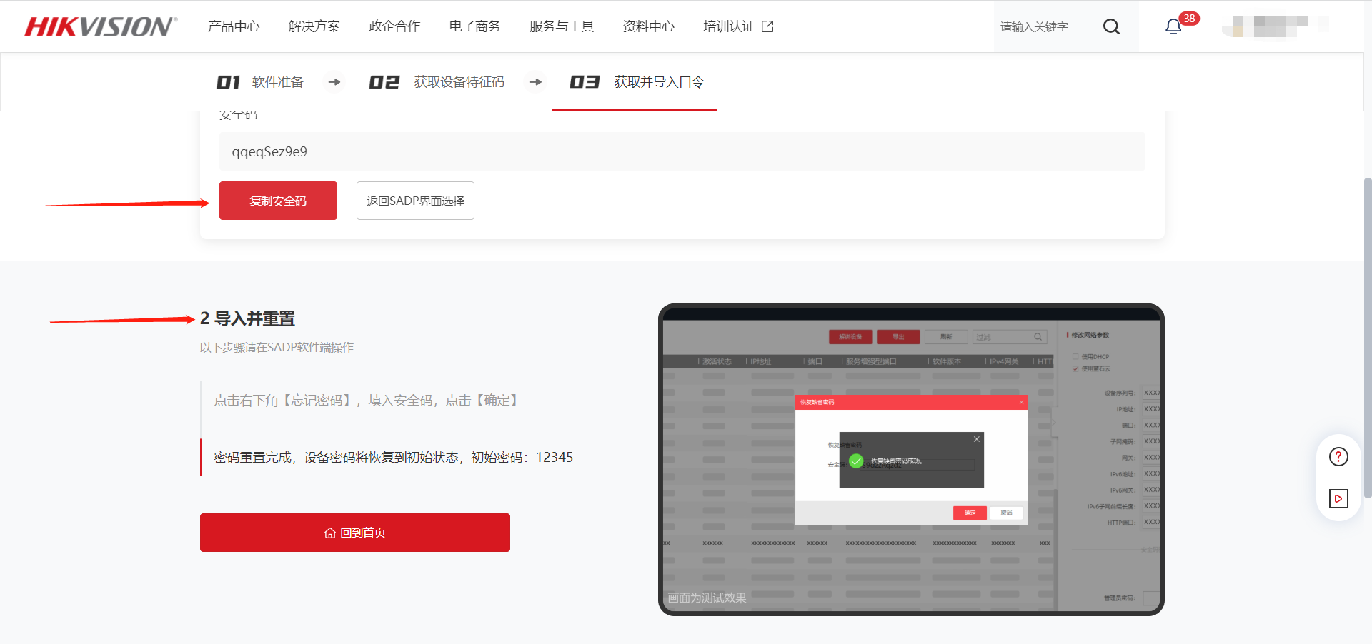1、根据界面提示进行操作,去设备网络搜索软件(SADP)导出文件,建议保存桌面