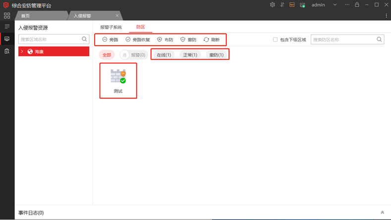 打开平台客户端,点击“入侵报警”,进入对应模块页面