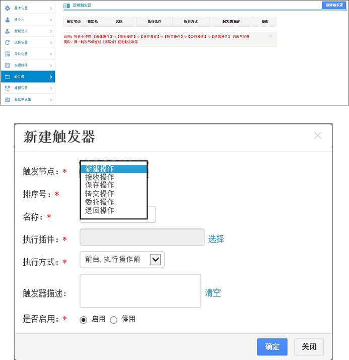 作流设计过程,同时将流程定义的相关操作统一在同一个页面,使人一目了然。