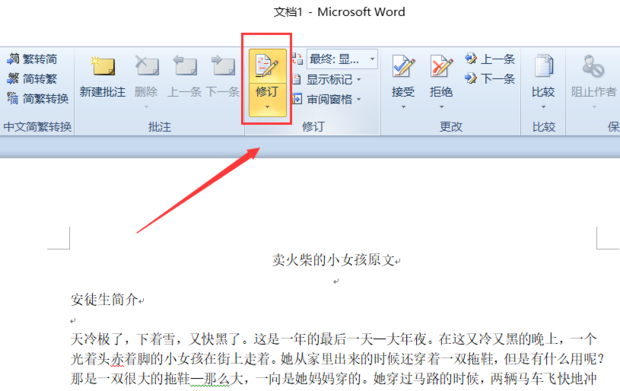 5、点击“修订”,这里要注意修订按钮变黄了才进入修订状态。