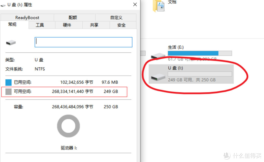 插在电脑上,这个 HP 假 U 盘被识别为 250GB。
