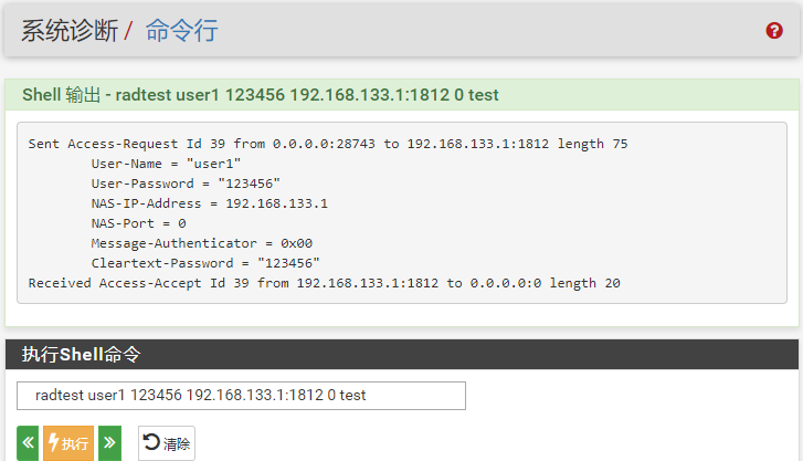 如果测试成功,应该能看到 “Received Access-Accept…”这样的字符串。pfSense设置Radius服务器教程  第6张