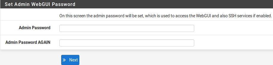 如果在任何时候必须重复此初始配置,请从WebGUI的“系统>配置向导重新访问该向导。