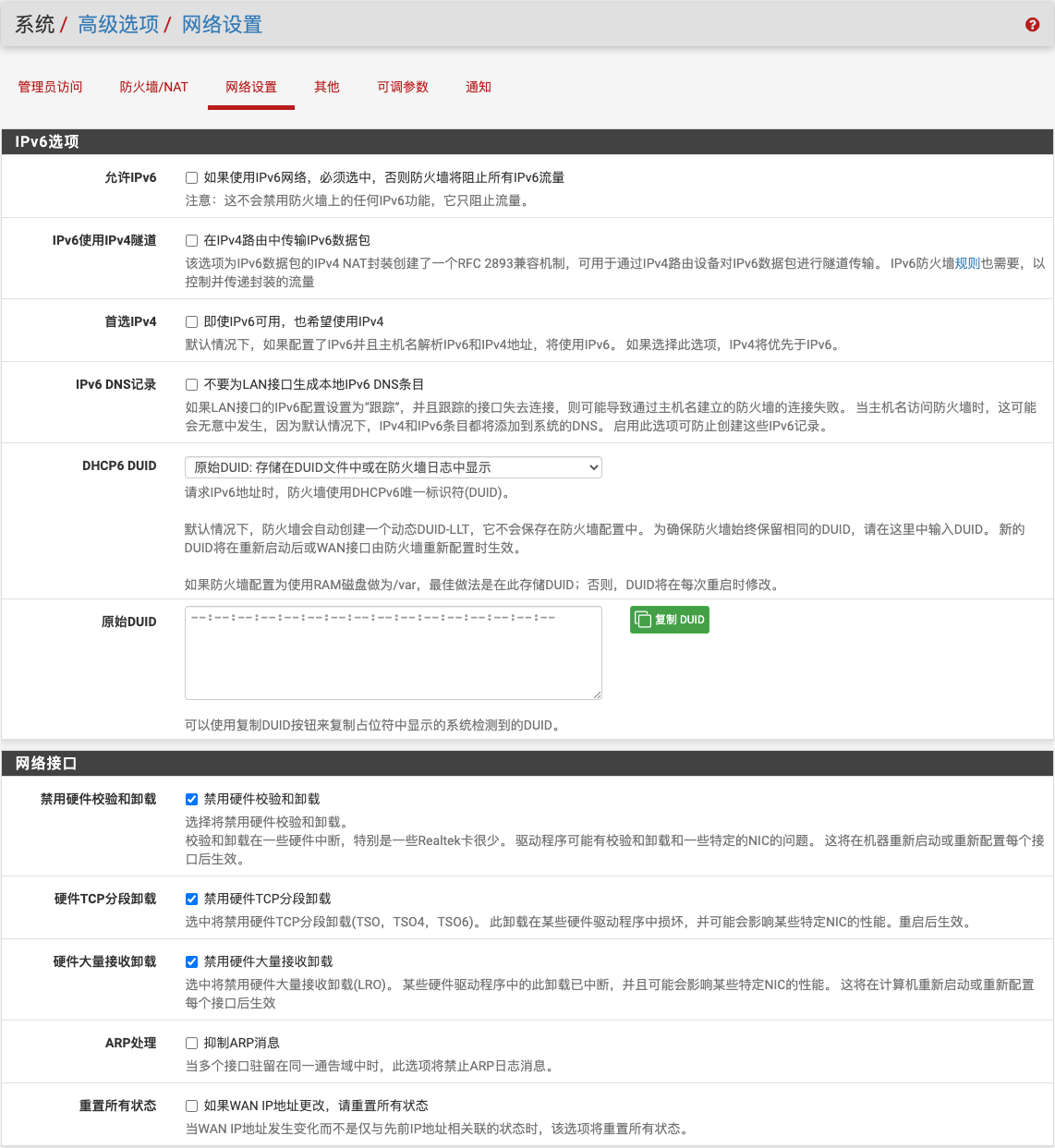 注意:从下拉列表中选择一个网关,或添加一个新网关并选中它,pfSense将该接口视为NAT和相关功能的WAN类型接口。这对于内部接口(例如LAN或DMZ)则是不期望看到的。但仍可以在那些接口上将网关用于静态路由和其他目的,而无需在接口页面上选择网关。